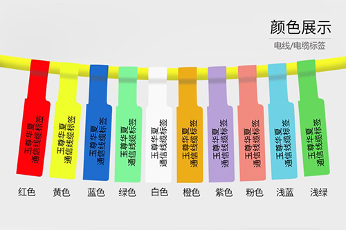 彩色线缆标签防水、防刮、防腐蚀、耐撕、可手写、可机打、保存时间长,10种颜色可选,分别是:红色、黄色、蓝色、绿色、白色、橙色、紫色、粉色、浅蓝、浅绿等等。