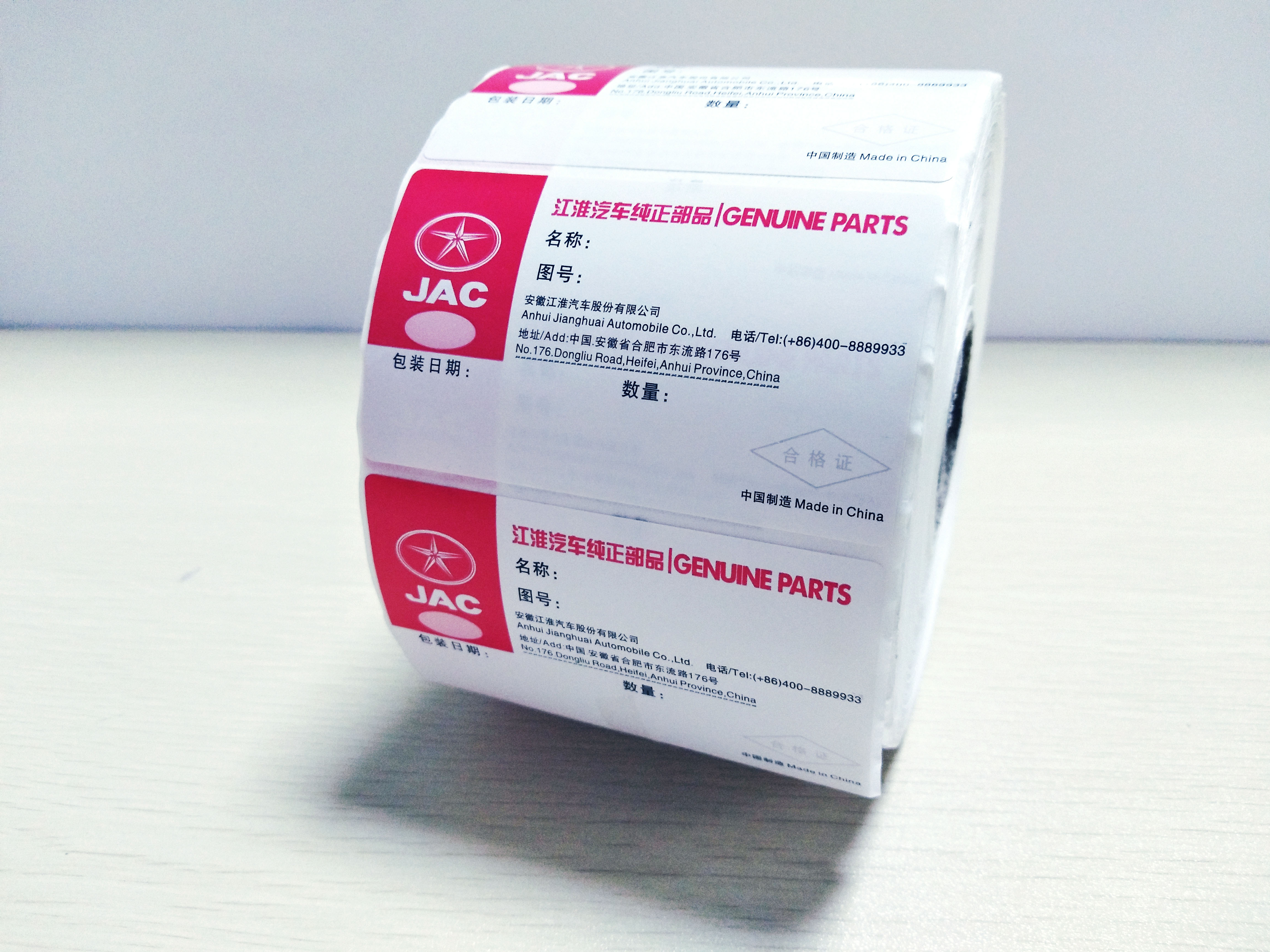 安徽江淮汽车集团股份有限公司(简称江淮汽车或JAC),是一家集全系列商用车、乘用车及动力总成等研产销和服务于一体的“先进节能汽车与新能源汽车并举的综合型汽车企业集团”。为此各种大品牌都需要一家大型,专业的不干胶印刷厂给他们提供各类标签。2015江淮汽车负责人在网络上搜索不干胶厂家信息,在综合对比多家厂家实力之后,她联系了我们远竞达。我们专业负责人也是详细的与对方沟通,解答了对方的相关问题,并了解了具体要求,我们为此给他们提供了专业的印刷方案。再接下来进一步的来厂参观,我们的先进设备与生产团队让其更加信服我们的实力,最终选择了我们远竞达。